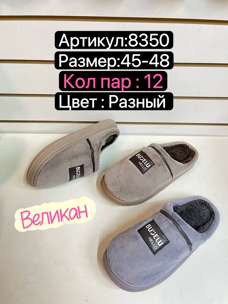 Домашние тапочки по 12 пар (45-48)р. / 8350